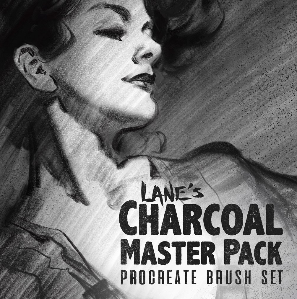 Lane's Charcoal Master Pack is a collection of finely tuned brushes for Procreate 5+.